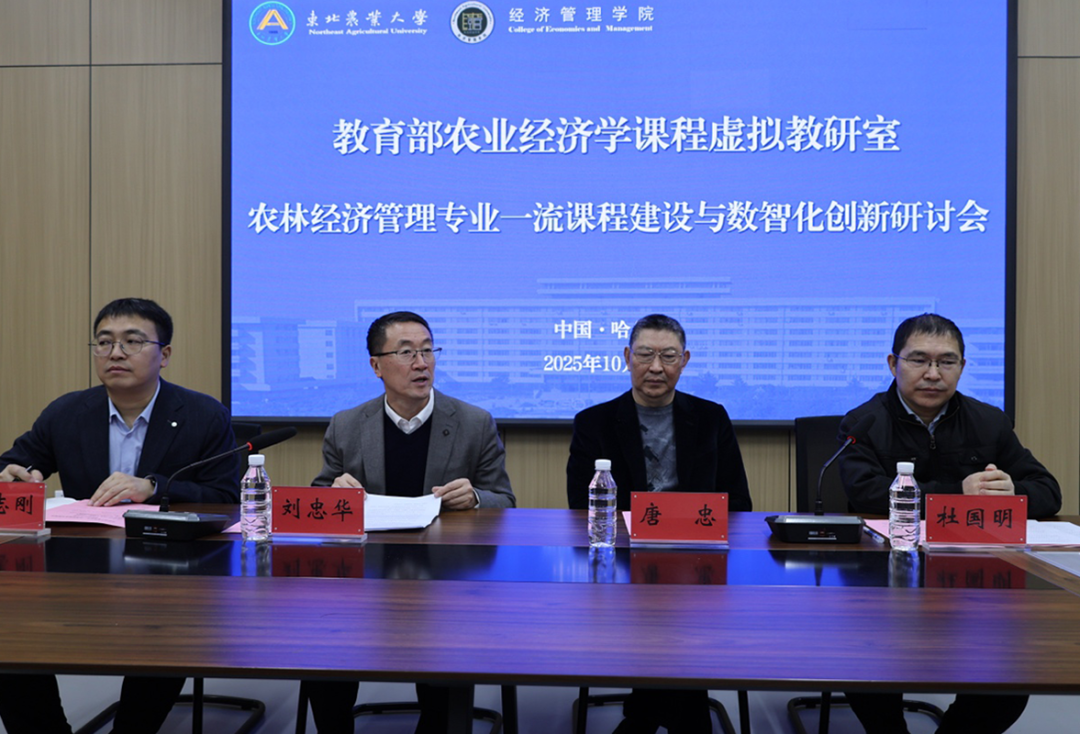 为进一步加强农业经济学课程虚拟教研室建设工作,推动各单位一流课程建设与数智化创新,共同提高农业经济管理类专业本科教学水平,农业经济学课程虚拟教研室和东北农业大学经济管理学院于2025年10月19日,在黑龙江省哈尔滨市召开了农林经济管理专业一流课程建设与数智化创新研讨会,会议由东北农业大学经济管理学院承办。 会议开幕式由东北农业大学教务处处长杜国...